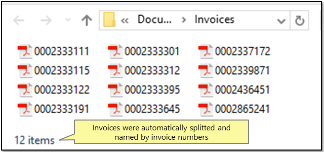 Each invoice is now saved as a separate PDF file and named by the corresponding invoice number.