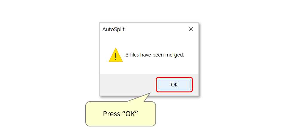 A report box displays the number of output files. Press "OK" to close it.