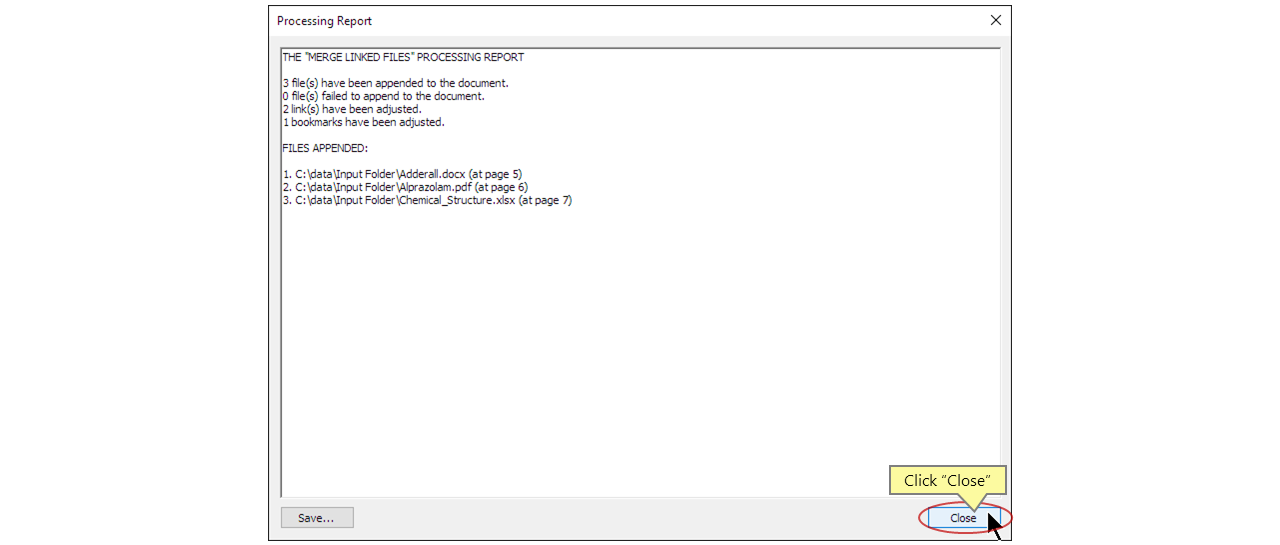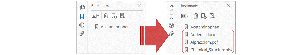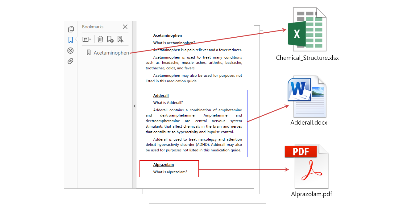 The sample document we are going to use in this tutorial has links/bookmarks to multiple external files: Chemical_Structure.xlsx, Adderall.docx and Alprazolam.pdf.